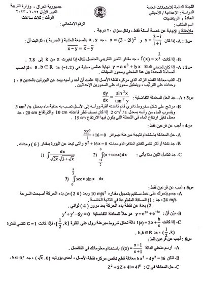 اسئلة واجوبة الرياضيات السادس الاحيائي الدور الاول 2023 [PDF]